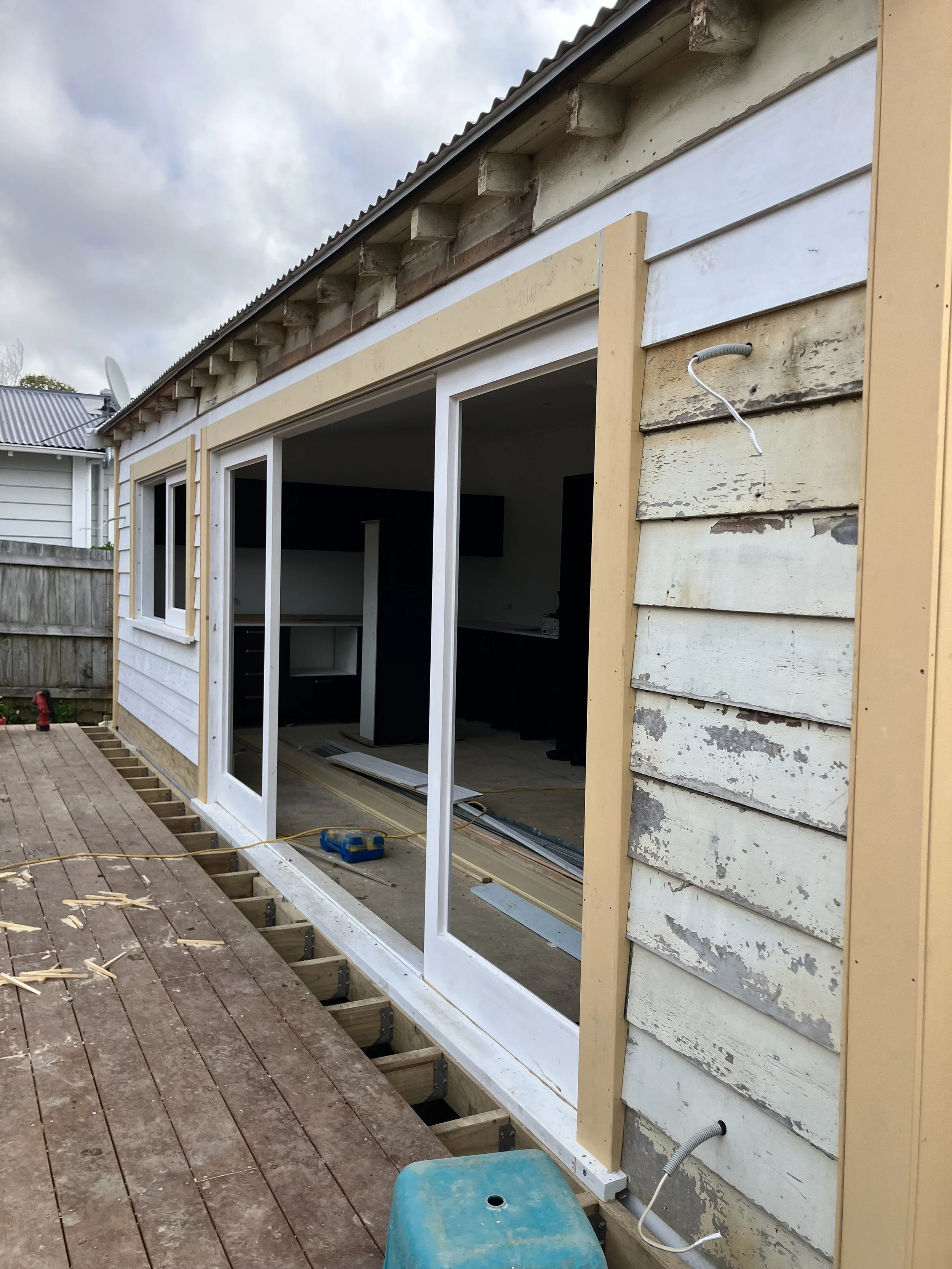 We remove existing windows and install new aluminium, timber joinery with correct flashings, waterproofing, and finishing.